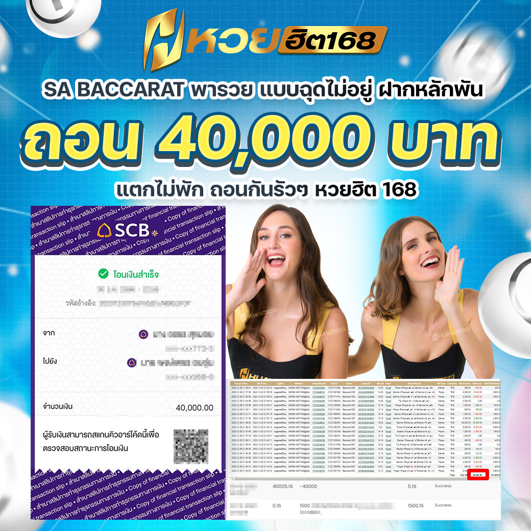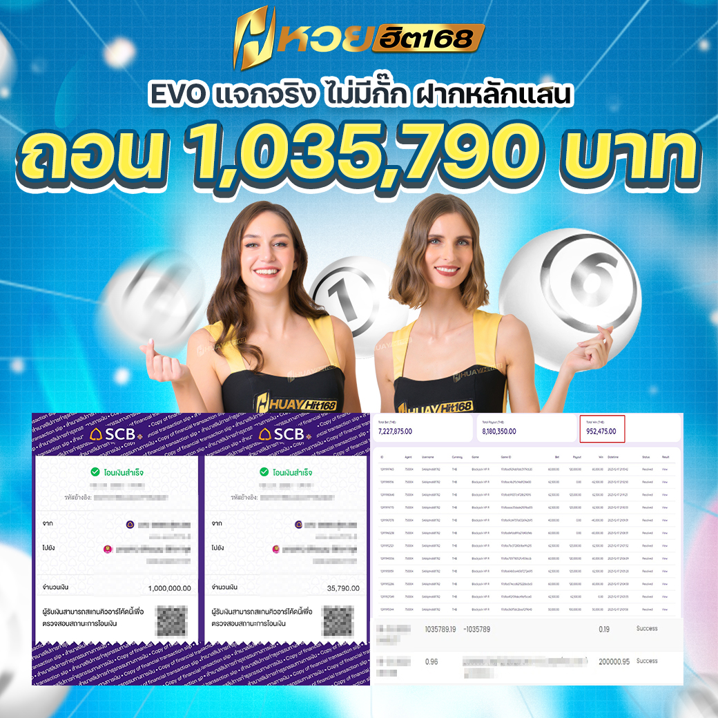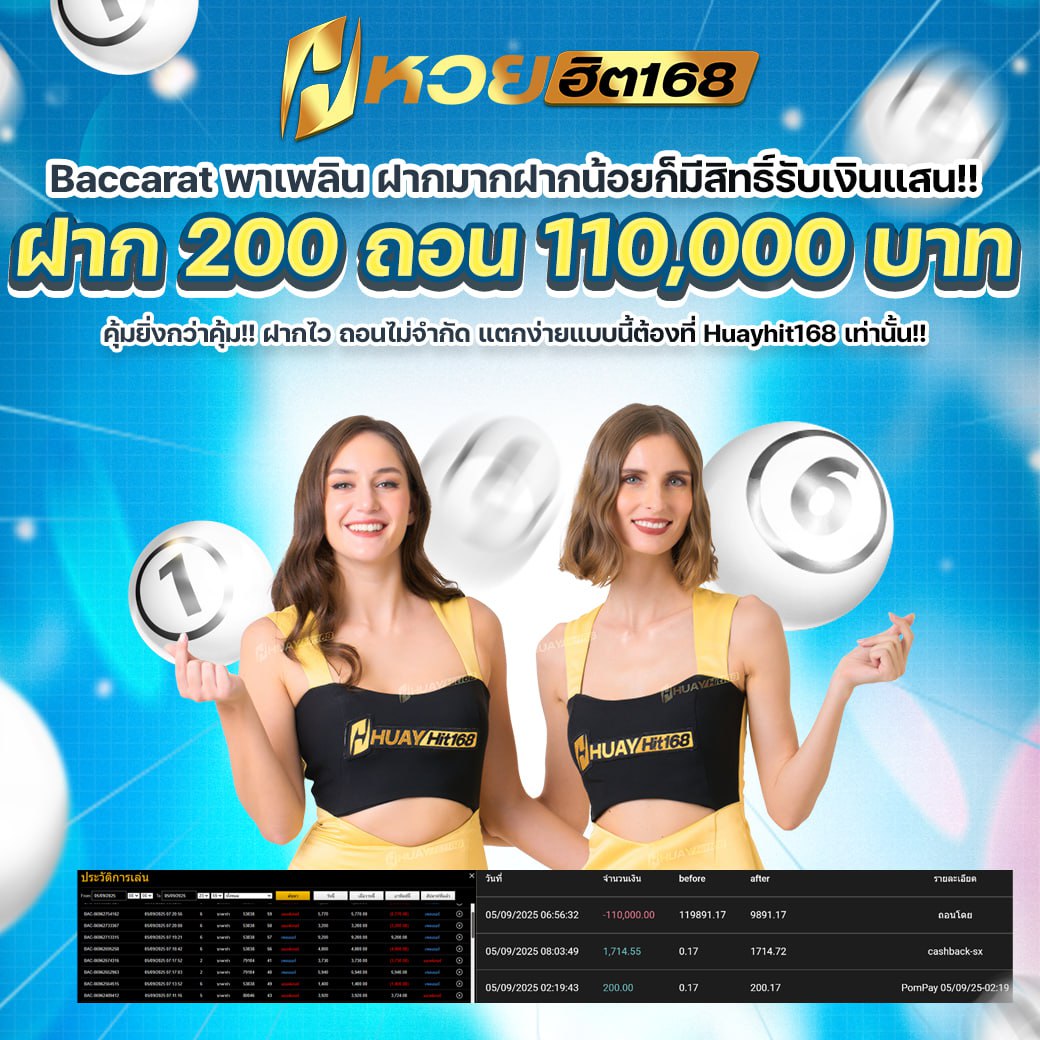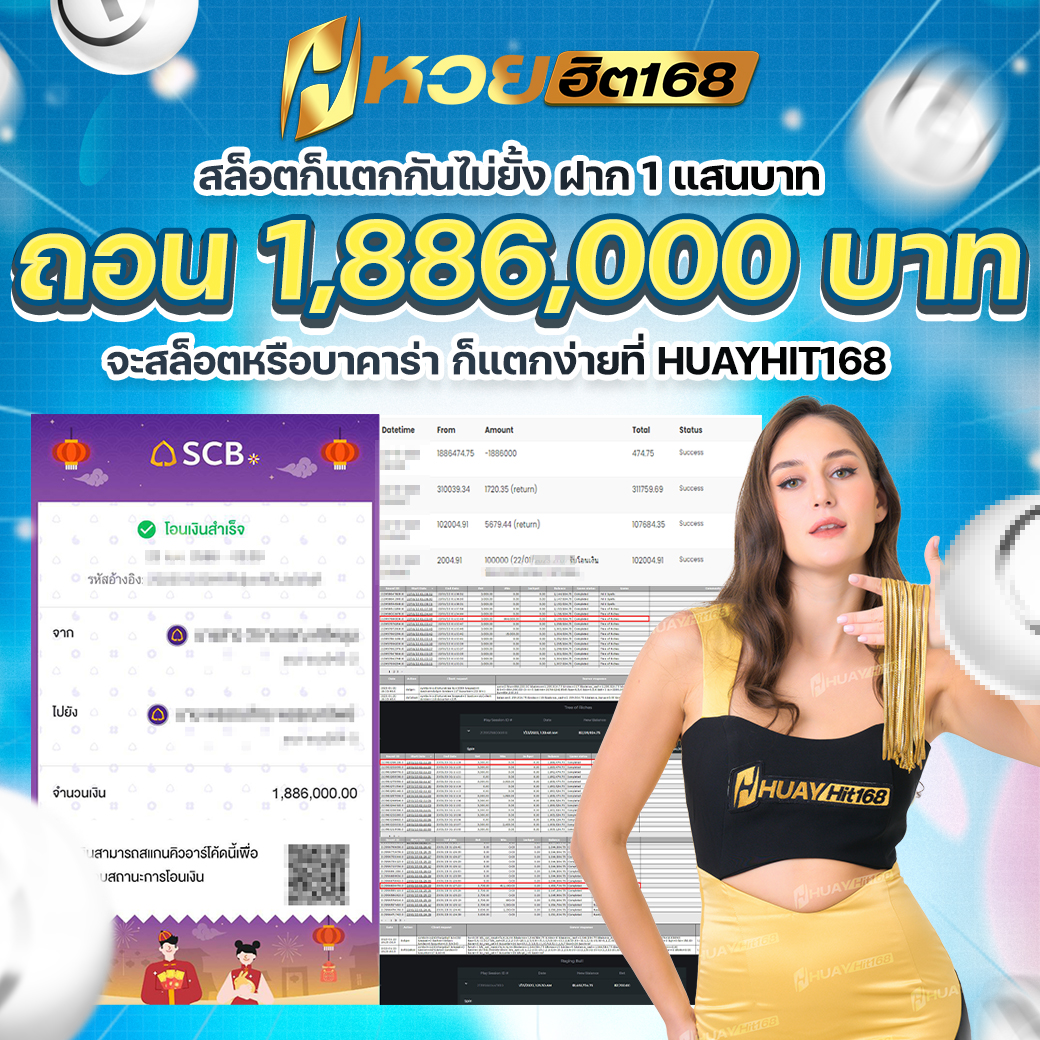 HUAYHIT168 เว็ปคาสิโนอันดับ 1 มีทุนน้อยแต่อยากได้เงินล้าน ฝากหลักร้อยถอนหลักล้าน ที่อื่นไม่จ่ายแต่เราจ่าย ถอนได้ไม่จำกัดจำนวนครั้ง ทั้งวันทุกวันตลอด 24 ชั่วโมง ด้วยระบบฝาก-ถอนที่ทันสมัยรองรับทุกธนาคาร โอนฟรี! ไม่มีค่าธรรมเนียม สามารถทำรายการถอนได้ด้วยตัวเอง เพียง 5 นาที
